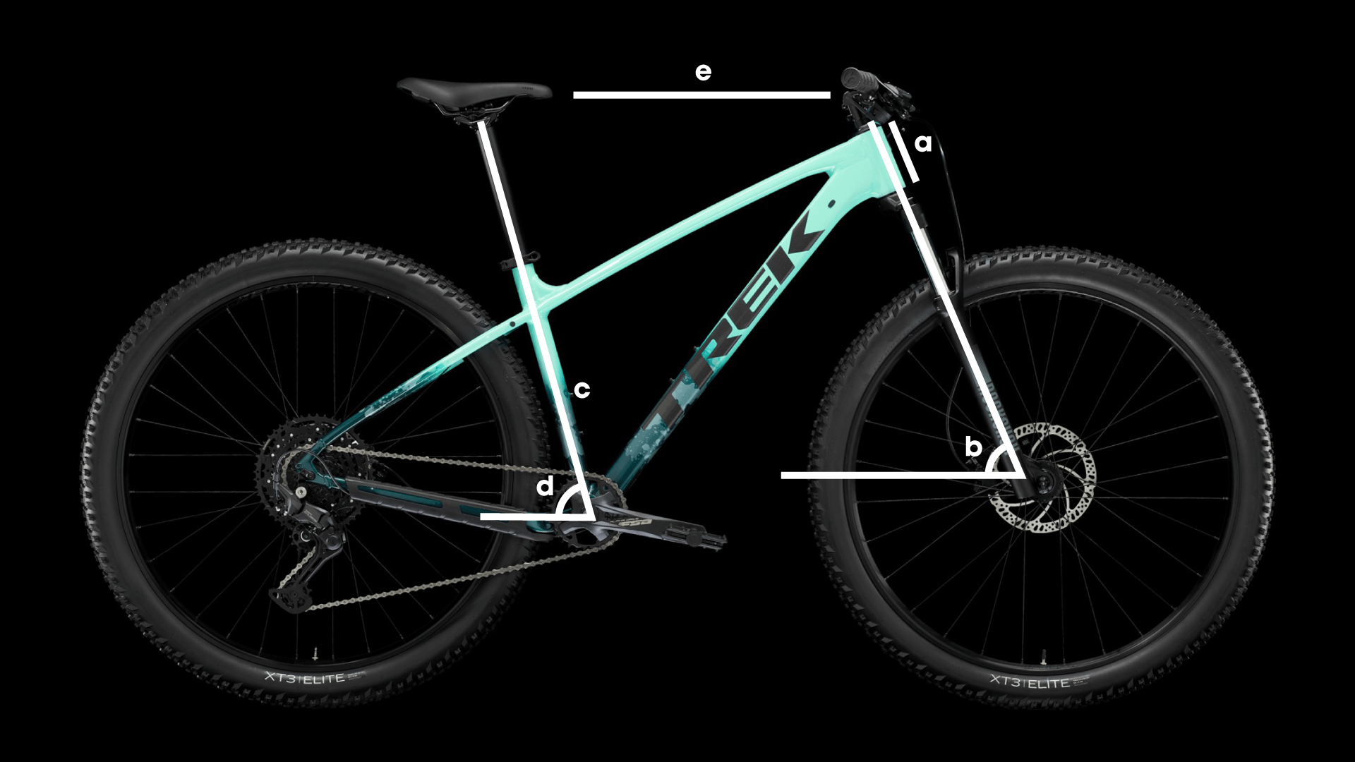 Marlinは、短いステムと幅の広いハンドルバーを装備することで、岩や木の根の間をすばやく繊細に操作しながら走り抜けらることができます。一方、長めのリーチ(e)で安定性を高め、より自信を持って走れるようになります。