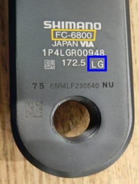 クランクアーム内側 (黄色枠:製品モデル名、青色枠:製造刻印) KF, KG, KH, KI, KJ, KK, KL, LA, LB, LC, LD, LE, LF, LG, LH, LI, LJ, LK, LL, MA, MB, MC, MD, ME, MF, MG, MH, MI, MJ, MK, ML, NA, NB, NC, ND, NE, NF, NG, NH, NI, NJ, NK, NL, OA, OB, OC, OD, OE, OF, OG, OH, OI, OJ, OK, OL, PA, PB, PC, PD, PE, PF, PG, PH, PI, PJ, PK, PL, QA, QB, QC, QD, QE, QF, QG, QH, QI, QJ, QK, QL, RA, RB, RC, RD, RE, RF