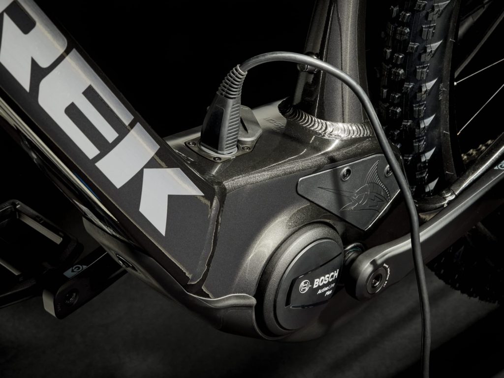 内蔵の400Whバッテリーでトレイルを2〜4時間走れます。(正確な時間はアシストレベルやライダーの体重によります) 更に250WhのBosch PowerMoreレンジエクステンダーバッテリー(別売り)を装着(Sサイズ以上のMarlin+に装着可能)することで、60%以上航続距離を伸ばすことができます。(写真のグレードは日本未発売)