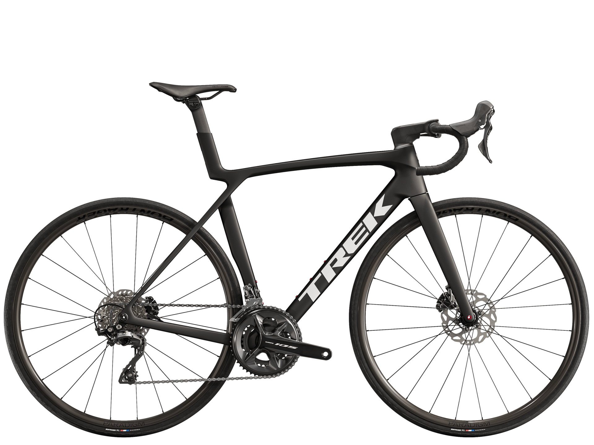 MADONE SL7にはShimano Ultegra Di2、SL6にはShimano 105 Di2、SL5にはShimano 105(機械式)が組み合わせられます。ホイールなどのコンポーネントも異なりますが、フレーム本体は同グレードです。